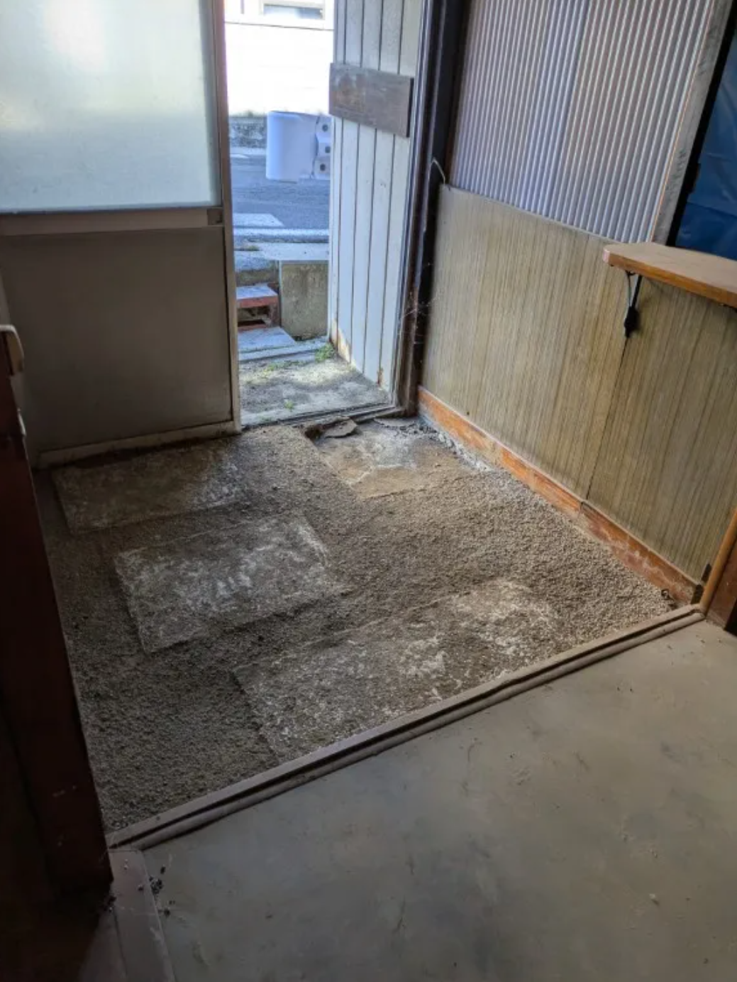 店舗部分は水回りの設備がなく、床も脆くなっている為、住宅部分と併せて修繕が必要と予想されます。