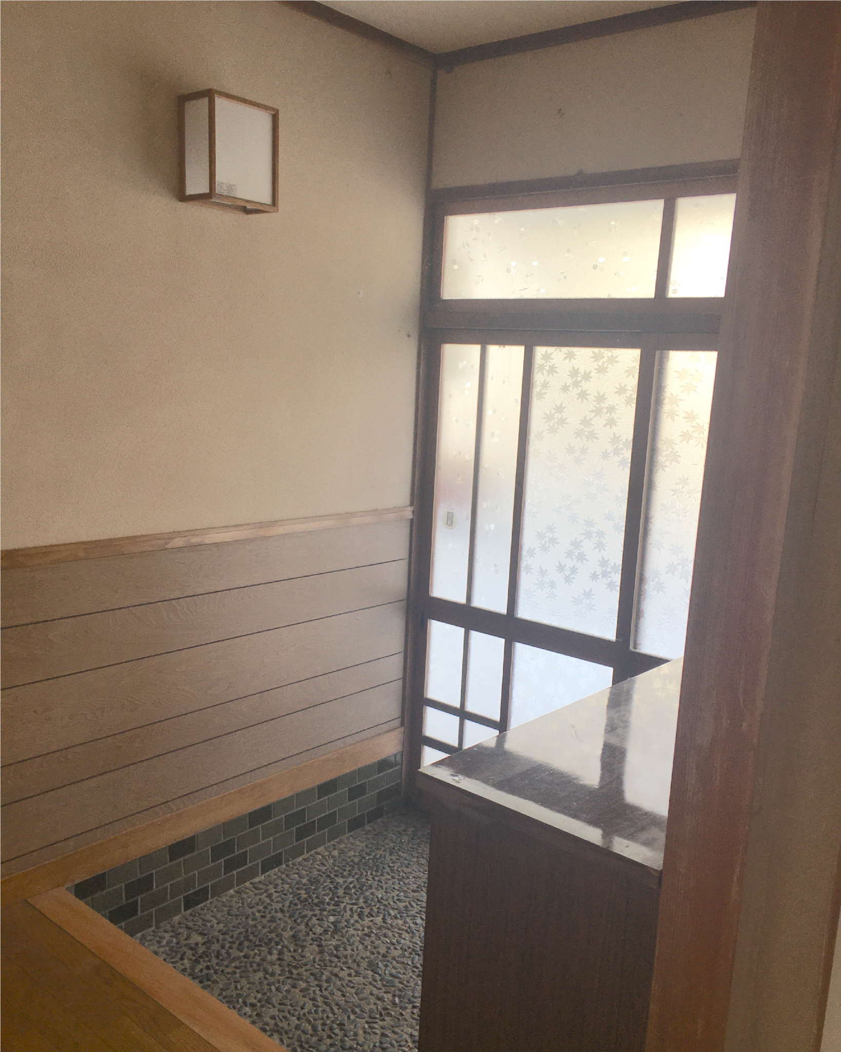 宮澤さん「今回の工事は、ご夫婦以外にもお二人の山仲間や、有沙さんのお父様にも手伝ってもらっています。リビングのベンチや寝室との境目の障子は、お父様の造作です。洗面は有沙さんが自分でタイルを張り、鏡は骨董市で有沙さんが見つけたものを使いました。予算の関係もありますが、もともとの家にあった使い込まれた扉やガラス、タイル、照明、把手、蝶番や鋲に至るまで、使えるものはそのままに大切に使ったのもデザインのポイントです。」